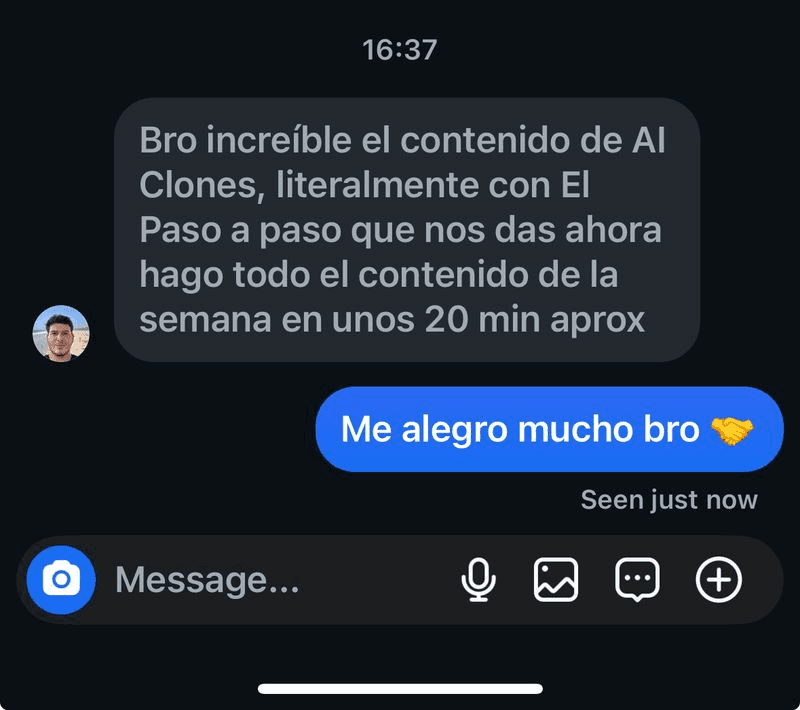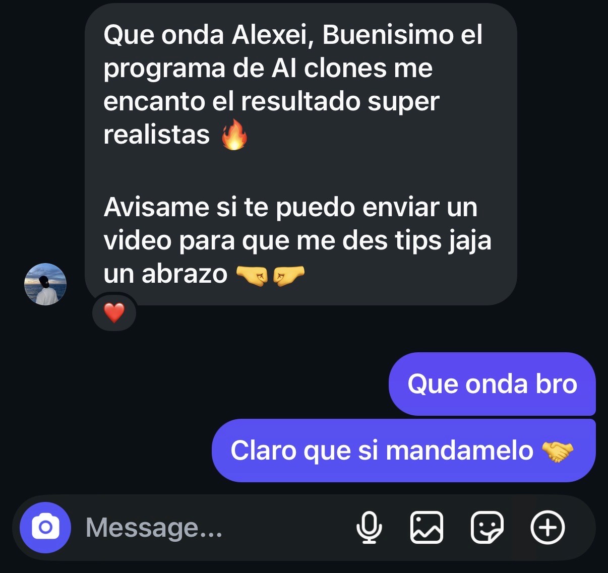 Obtén Acceso a la guía para Crear tu propio Clon Hiperrealista en tan solo 13 minutos y no tener que volver a grabar un video nunca mas. Para que puedas conseguir videos virales en tan solo minutos en vez de incontables horas.